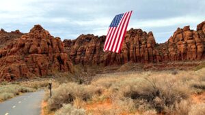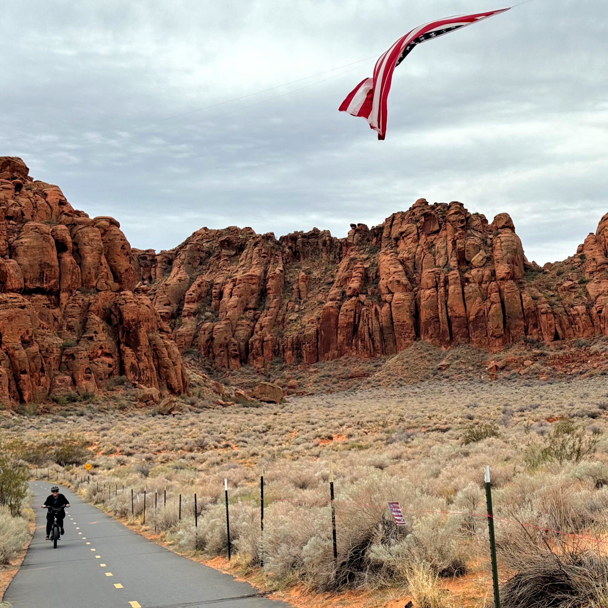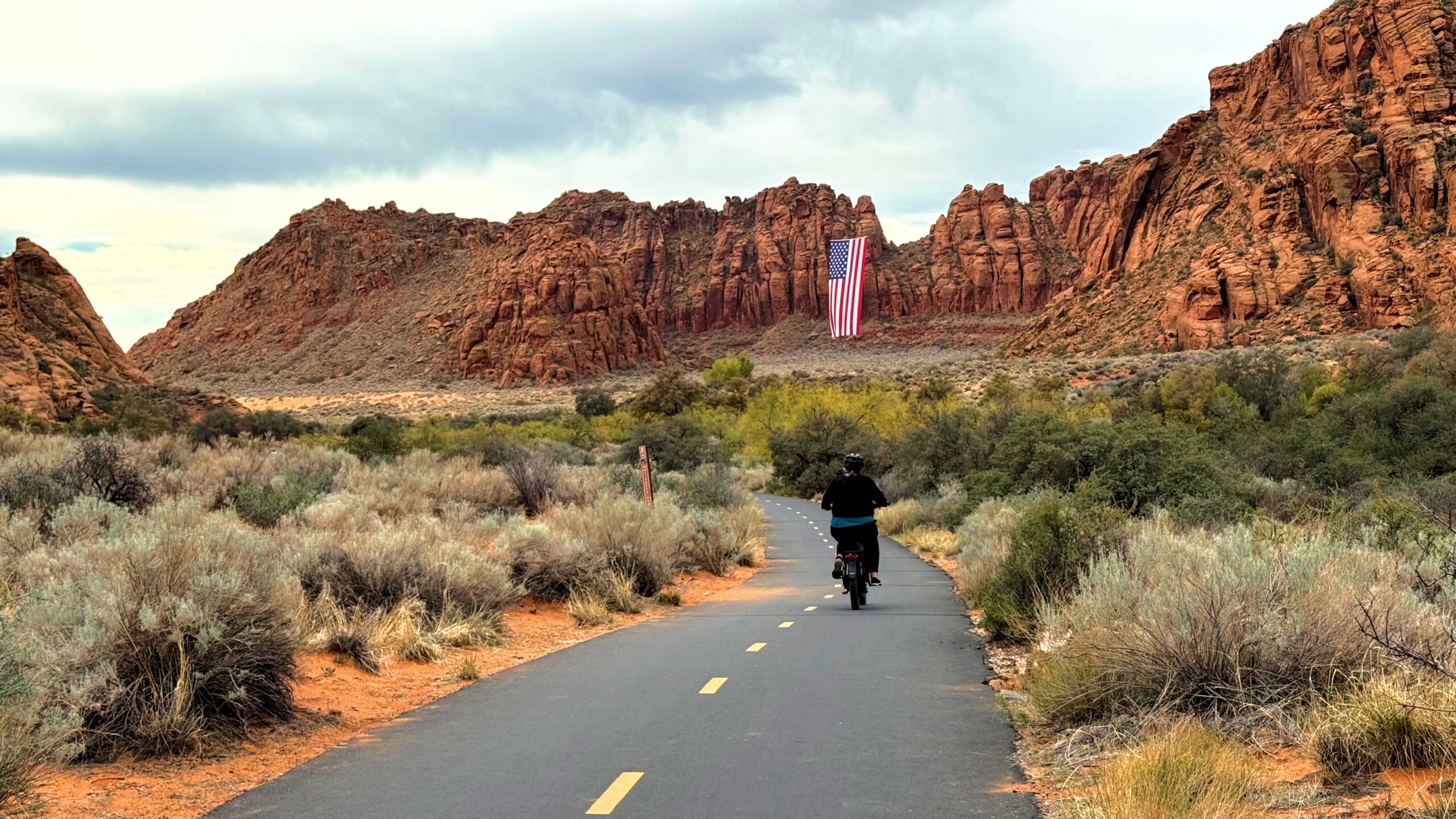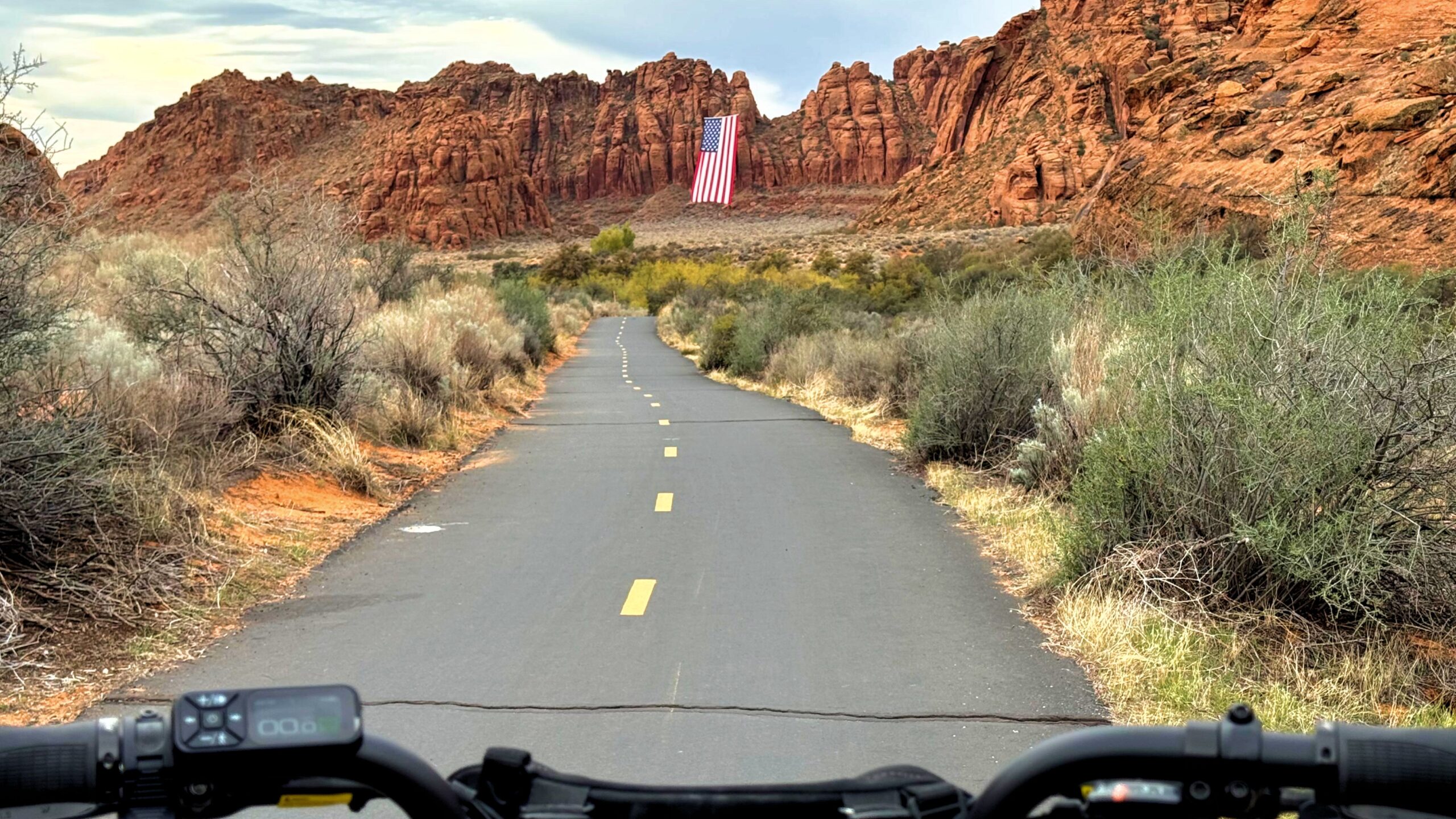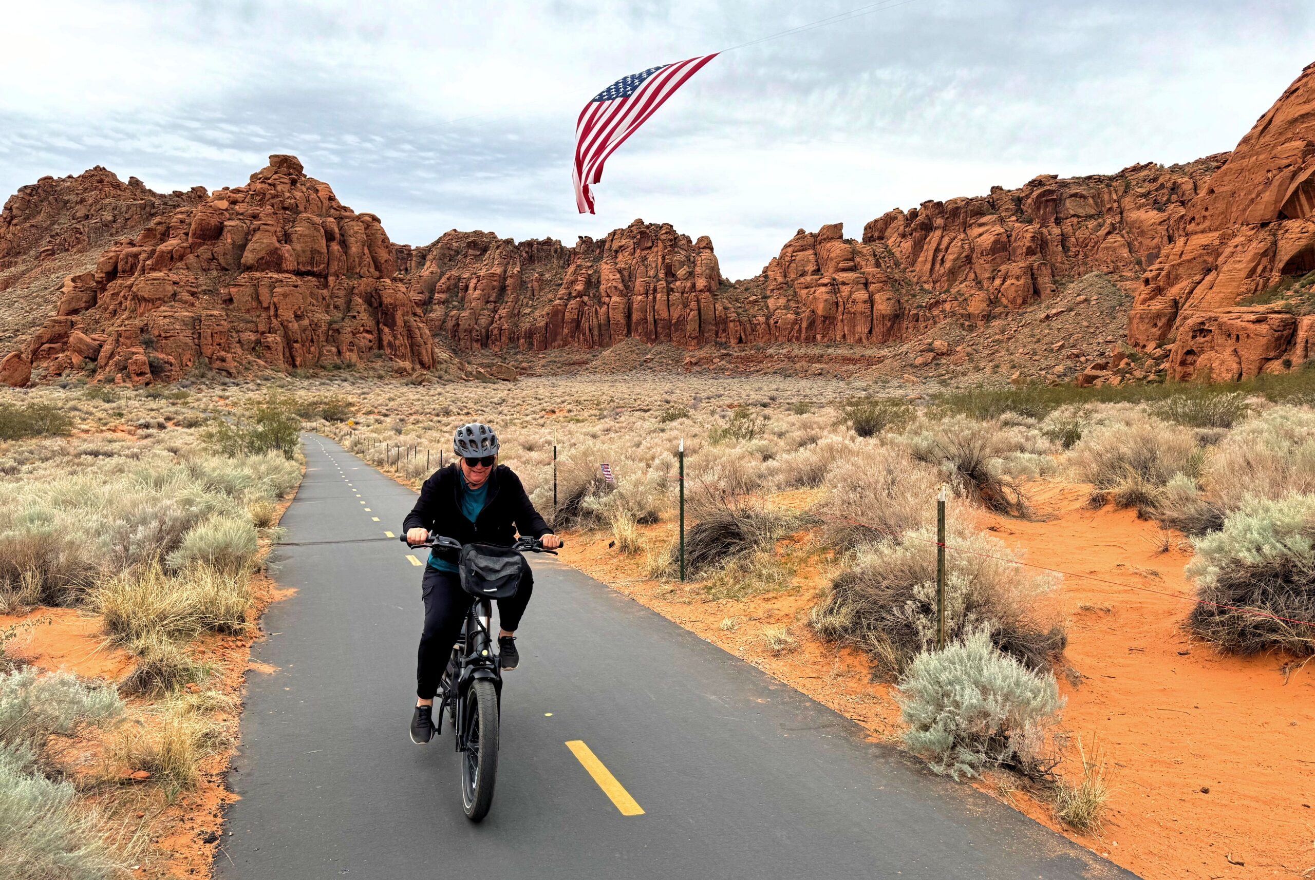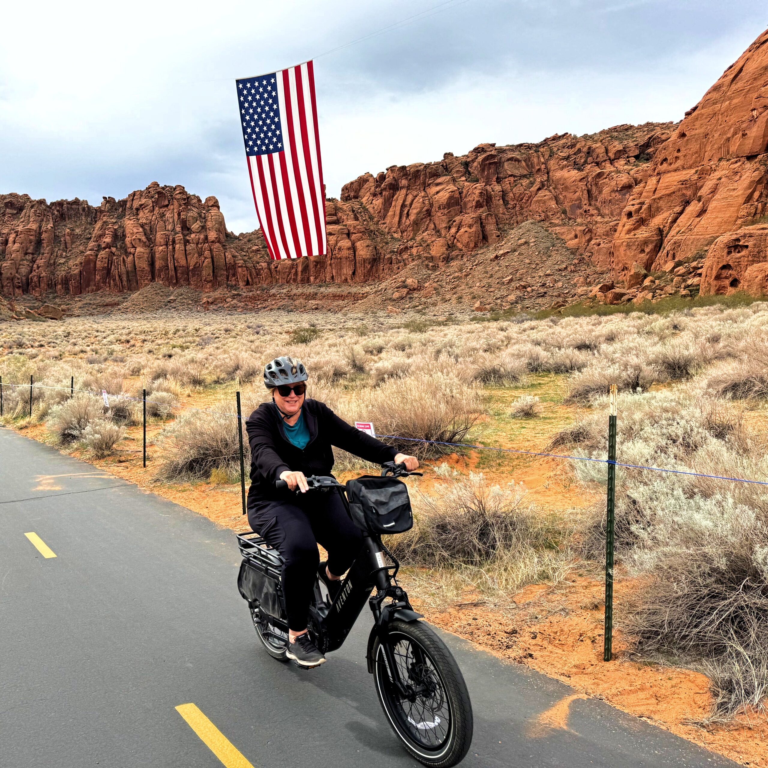 Snow Canyon E-bikes and Flag